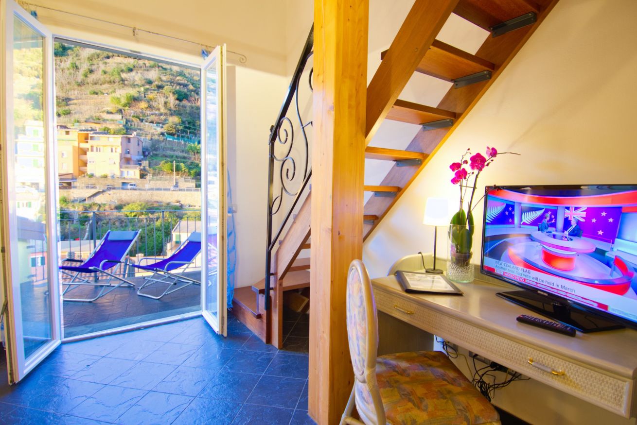 La camera offre inoltre libero accesso alla nostra terrazza panoramica e alla vasca idromassaggio con acqua riscaldata.