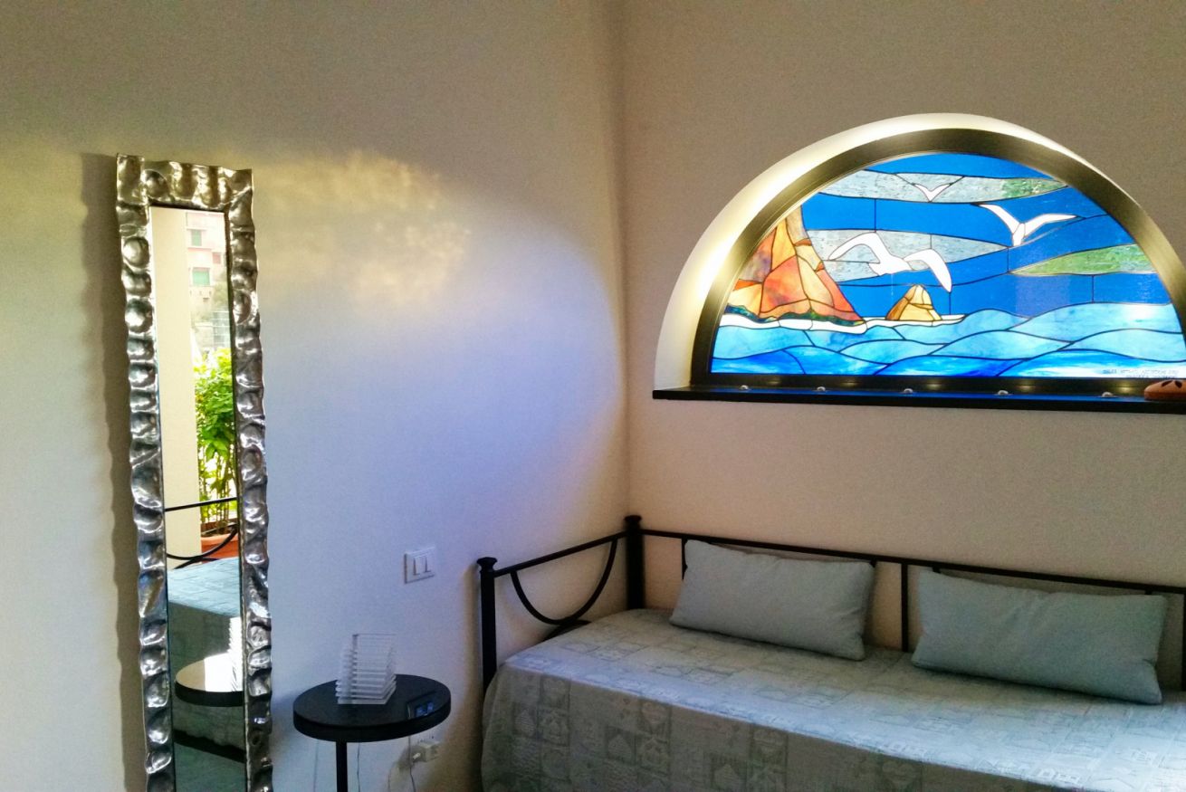 Illuinazione soft-led di vetrata e nicchia Tv.