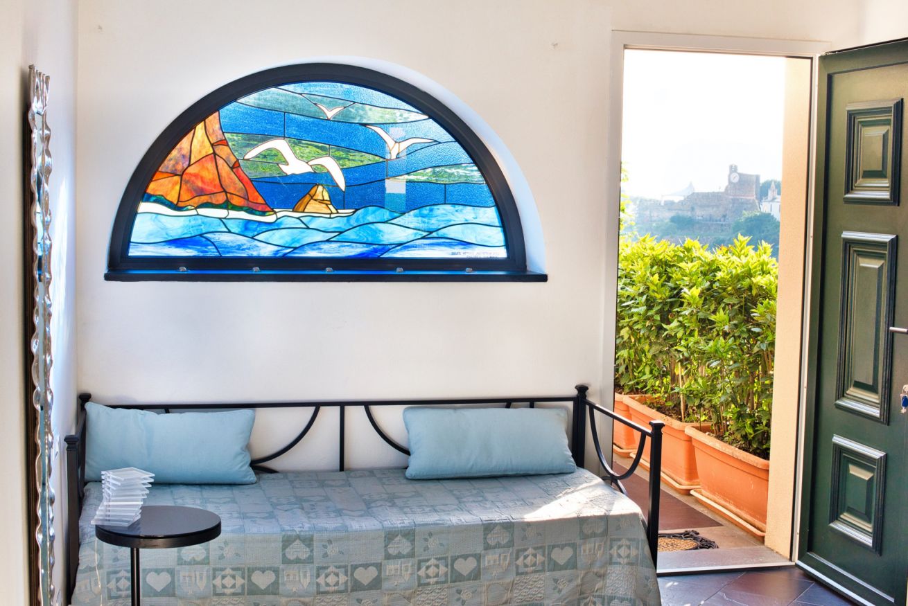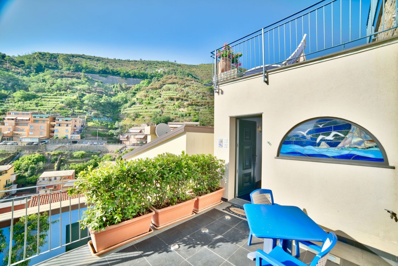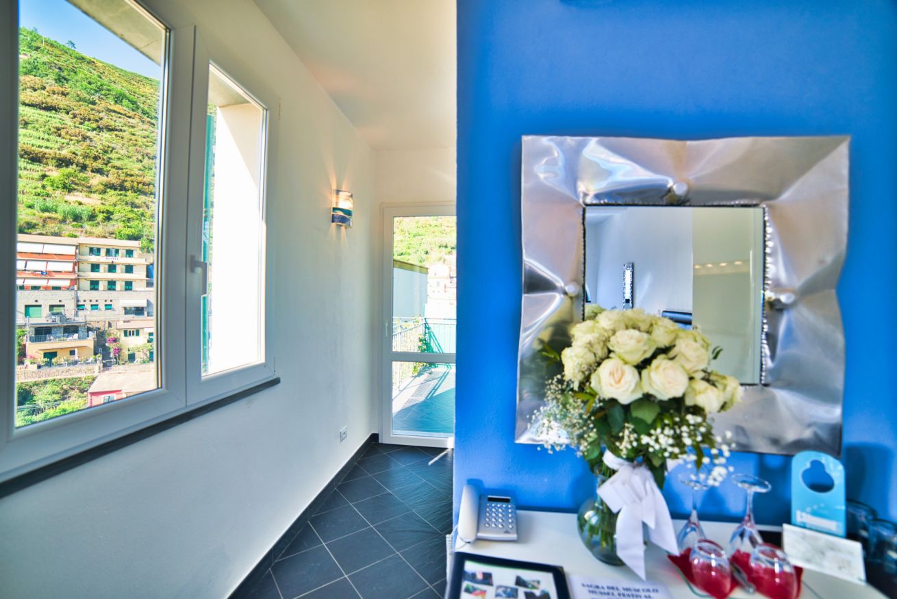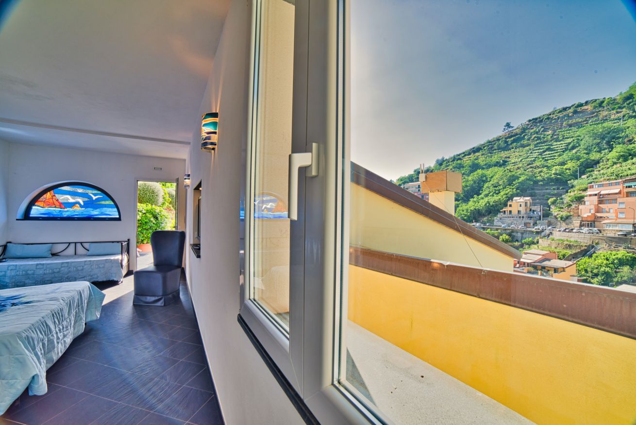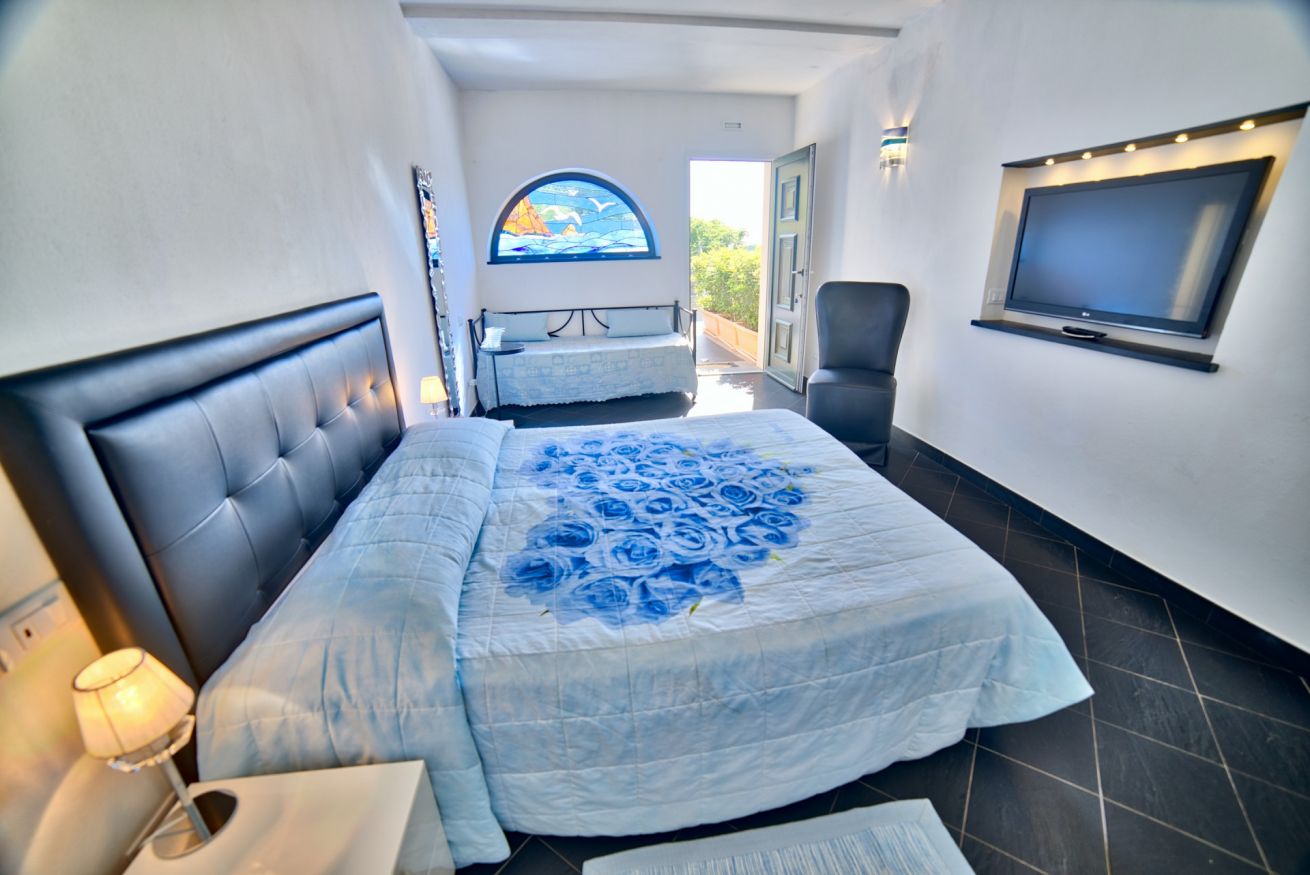 La camera offre inoltre libero accesso alla nostra terrazza panoramica e alla vasca idromassaggio con acqua riscaldata.