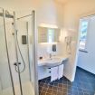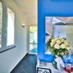 Bagno, spazioso ed elegante, dotato di ampio box doccia con idromassaggio, asciugacapelli e specchio retro-illuminato.